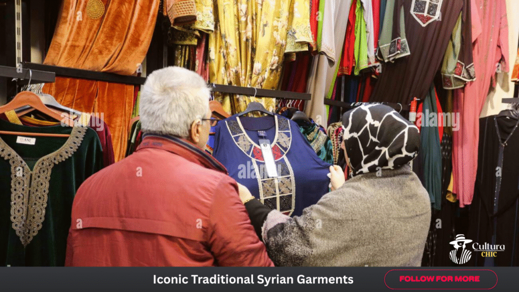 Some outfits are known across Syria. The thoub is a long robe, used by men and women. The sirwal is wide and comfy, often worn under other clothes. The bisht is a cloak used for special events. It shows power and wealth.